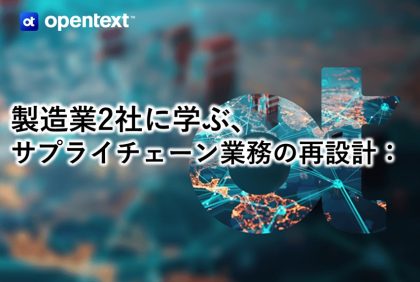 オープンテキスト株式会社は、情報活用の変革を促す「企業情報DX」の推進に向けて、ビジネスに不可欠な情報やプロセスを自動化するビジネスコンテンツ&プロセス管理をはじめ、企業間取引の情報を可視化しコントロールするB2B/EDI連携・サプライチェーン統合やFAXソリューション、Web&デジタルメディア管理、データ保護やサイバーセキュリティ、フォレンジックツール、AIを用いた各種の分析・可視化ツールなど、多種多様な業界・業種のお客様へ最適なソリューションを提供しています。